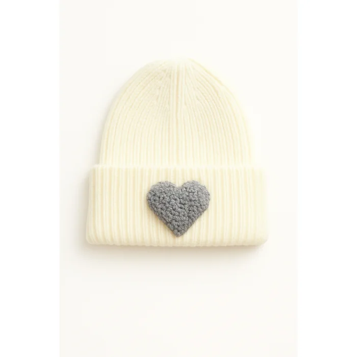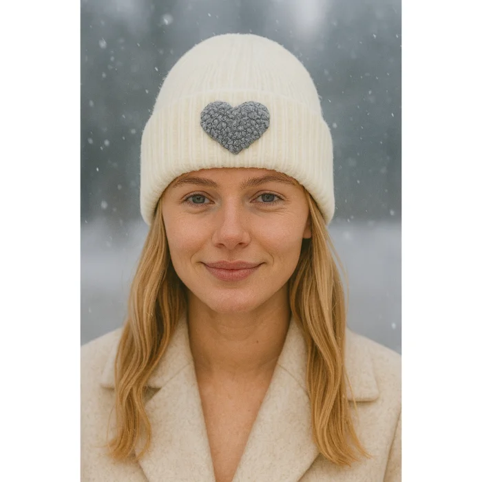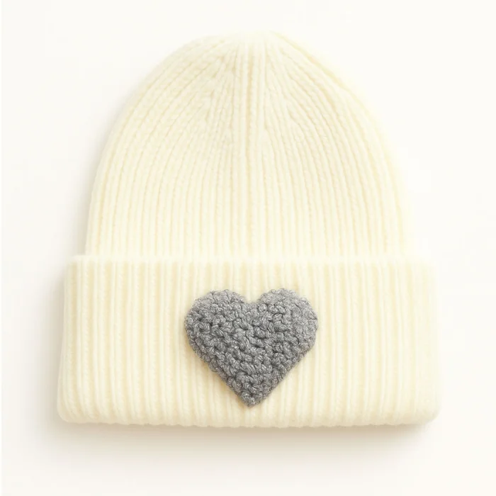 Product: Blue Beanie Glitter Gray Heart Punch-embroidery Patterned Luxury Wool Hat Holiday/christmas Gift