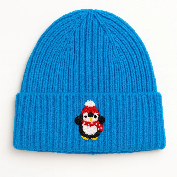 Product: Blue Wool Kids Beaniesi Holiday/christmas Penguini Hayvan Motif Punch-embroidery Detailed