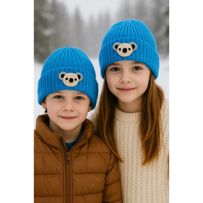 Product: Blue Wool Kids Beaniesi Koala Hayvan Motif Punch-embroidery Detailed Holiday/christmas Gift