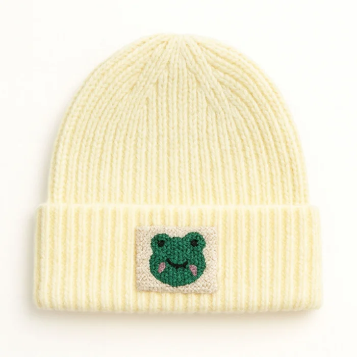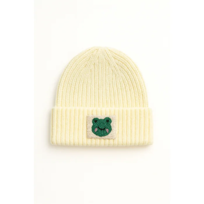 Product: Bluė Woollü Beanie Yeşil Frog Punch-embroidery Patterneḋ Hat