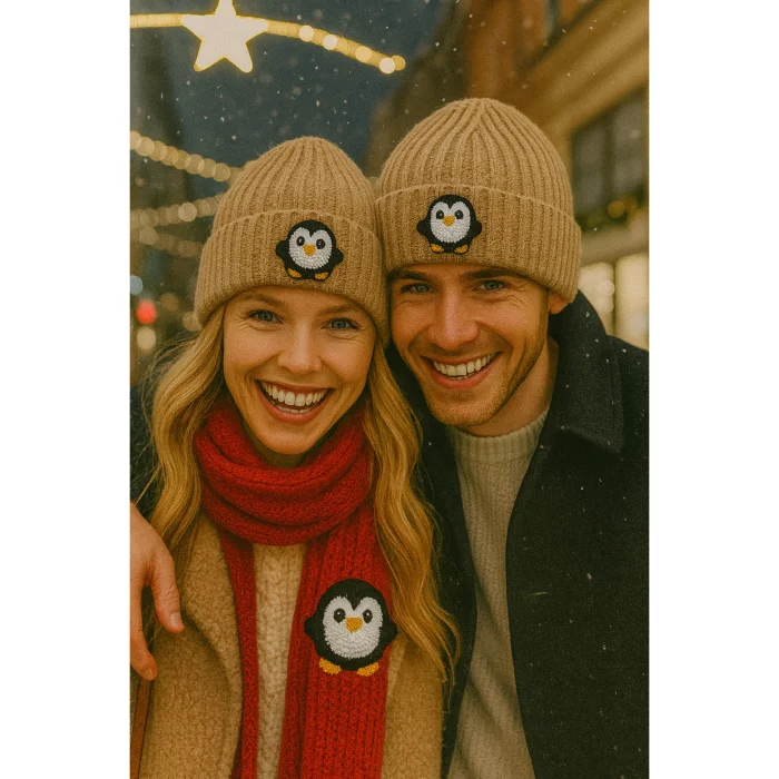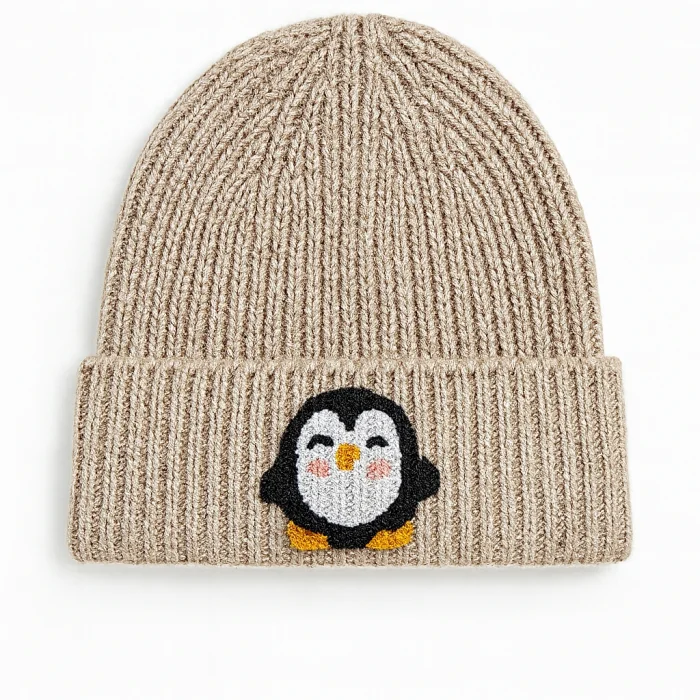 Product: Dark Cream Wool Beanie Penguin Punch-embroidery Luxury Beanie Patterned