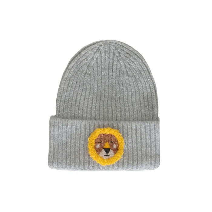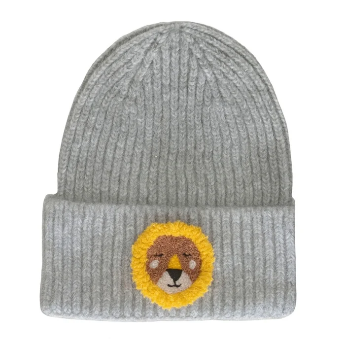 Product: Gray Kids Ve Youth Beanie Lion Punch-embroidery Patterned Luxury Wool Hat Holiday/christmas Gift