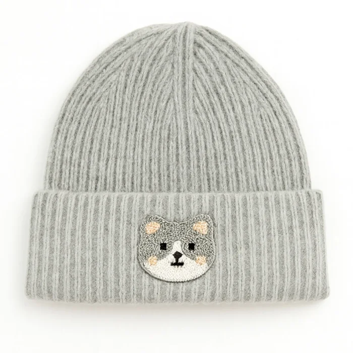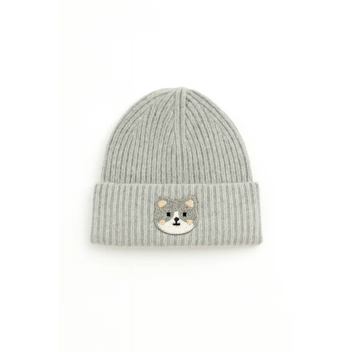 Product: Gray Wool Kids Beaniesi Cat Hayvan Motif Punch-embroidery Detailed
