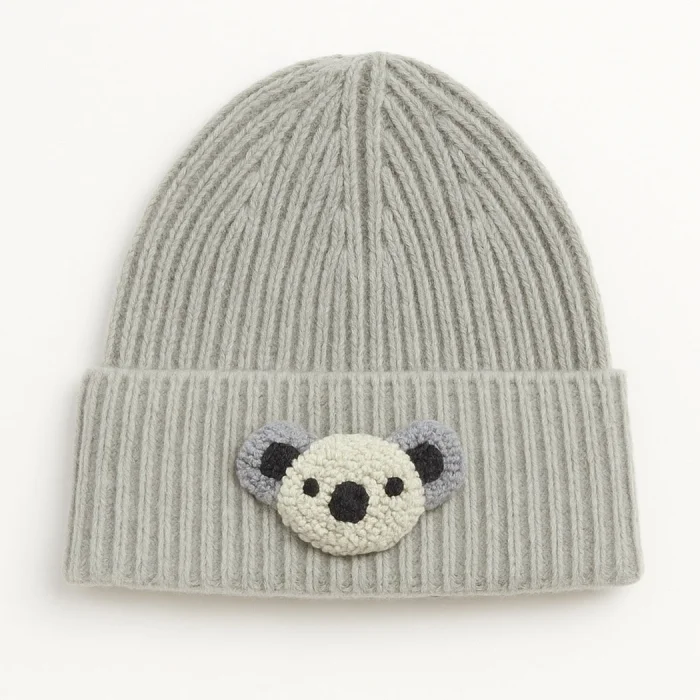 Product: Gray Wool Kids Beaniesi Koala Hayvan Motif Punch-embroidery Detailed