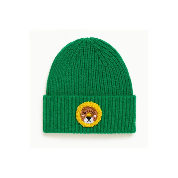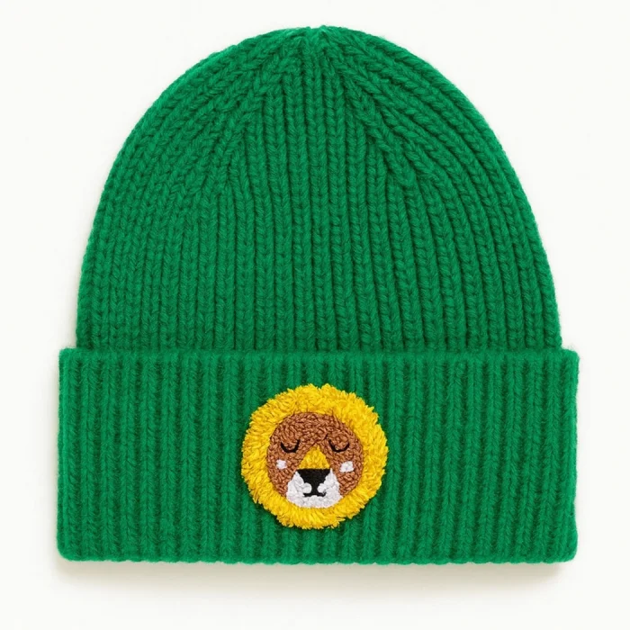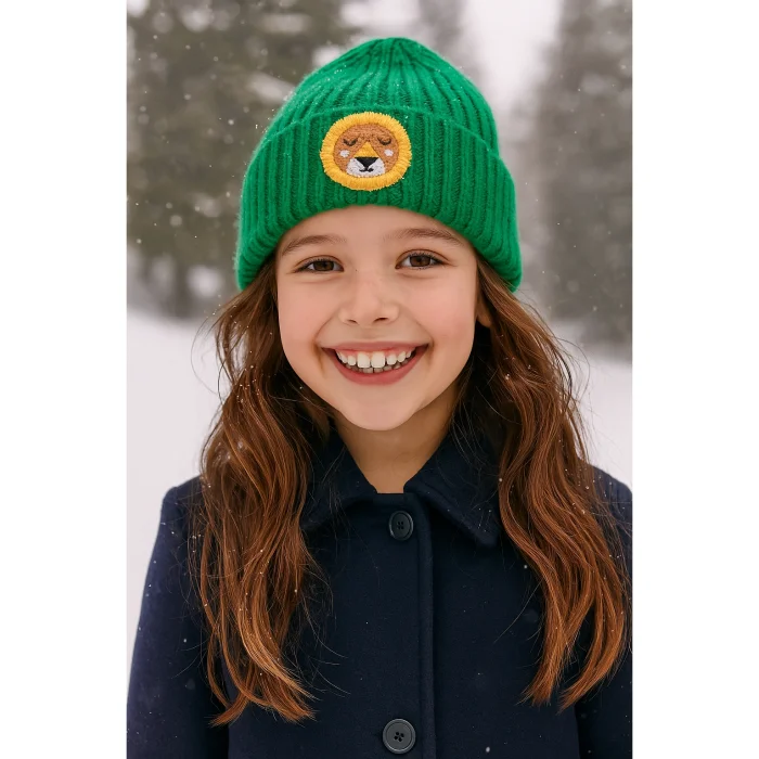 Product: Green Kids Ve Youth Beanie Lion Punch-embroidery Patterned Luxury Wool Hat Holiday/christmas