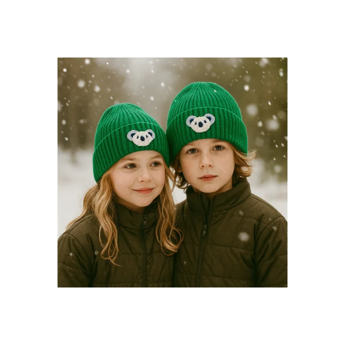 This beanie, which is a comfortable and stylish accessory specially designed for children, keeps warm and offers comfortable use thanks to its wool woven fabric; Its design, decorated with koala animal figures, attracts children's attention and gives them a fun style; Its pattern, enriched with punch details, provides a lively and dynamic look; Thanks to its wool material, it keeps children's heads warm even in cold weather, while at the same time offering a natural softness;