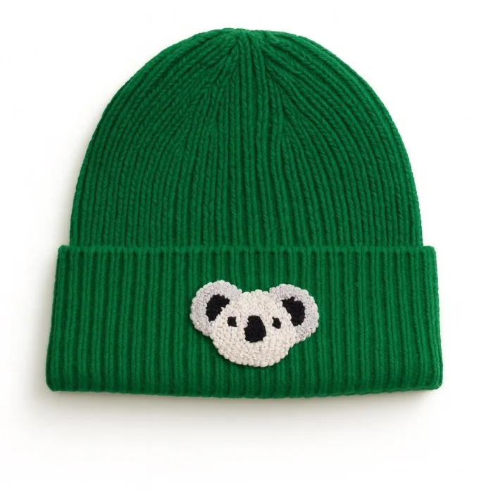 Product: Green Koala Punch-embroidery Detailed Luxury Wool Beanie
