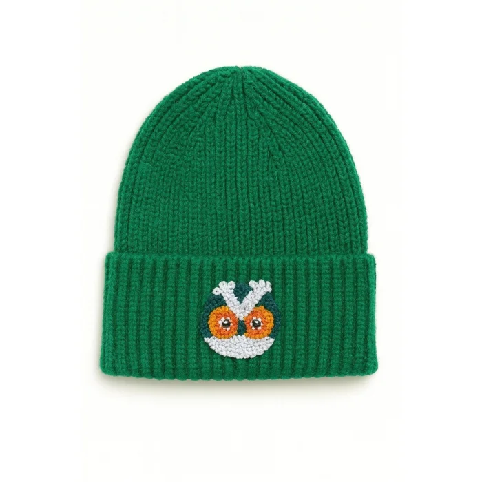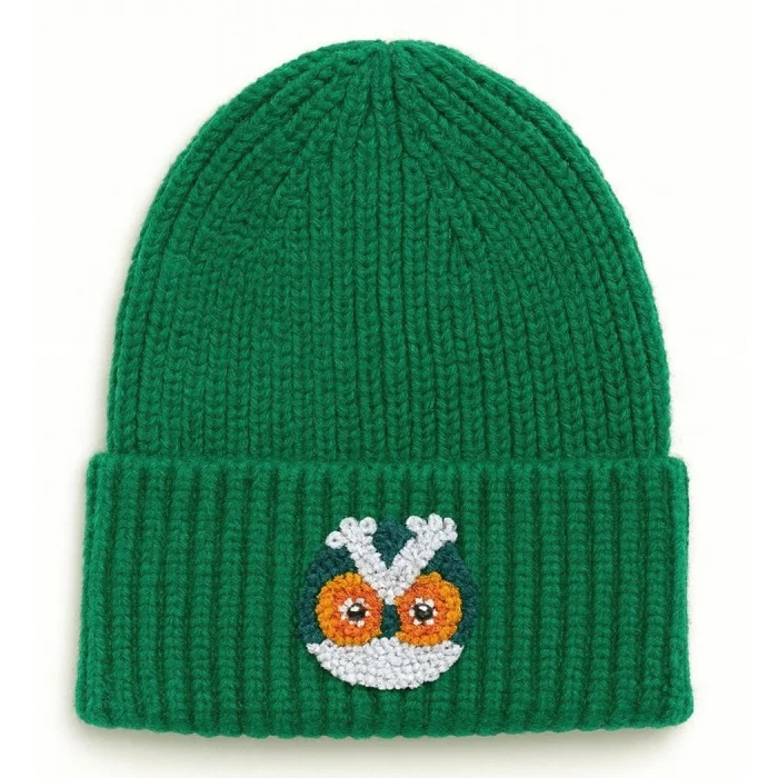 Product: Green Owl Wool Beanie Punch-embroidery Hat Holiday/christmas Gift