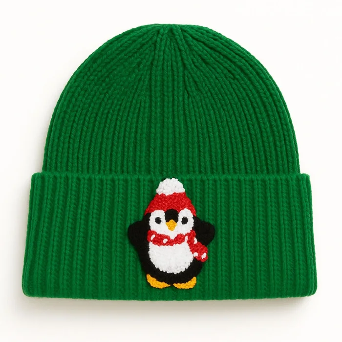Product: Green Wool Beanie Red With Scarf Penguin Punch-embroidery Luxury Beanie Hayvan Patterned