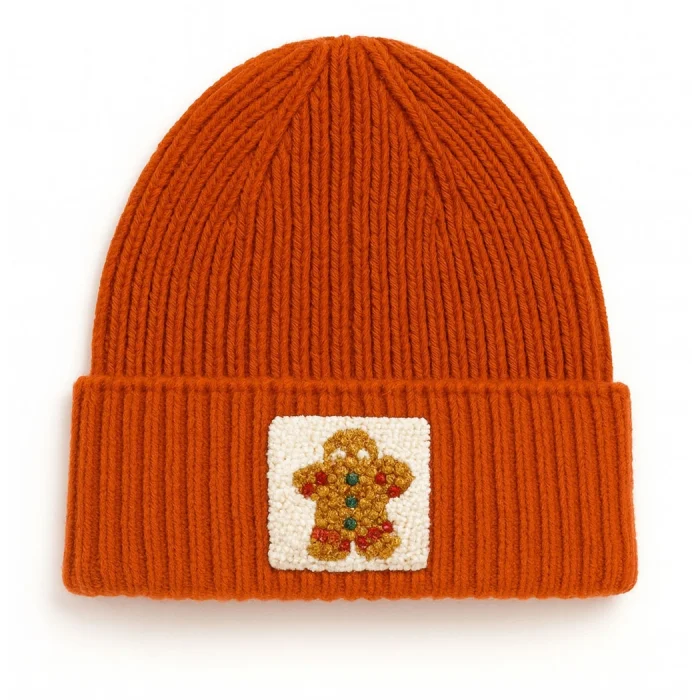 Product: Orange Beanie Ginger Bread Kurabiye Holiday/christmas Gift Punch-embroidery Patterned Wool Beanie