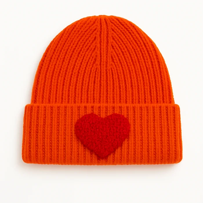 Product: Orange Kids Ve Youth Beanie Red Heart Punch-embroidery Patterned Luxury Wool Hat Holiday/christmas Gift