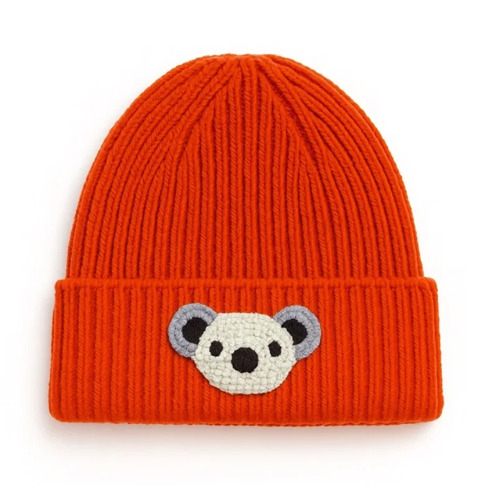 Product: Orange Koala Punch-embroidery Detailed Luxury Wool Beanie