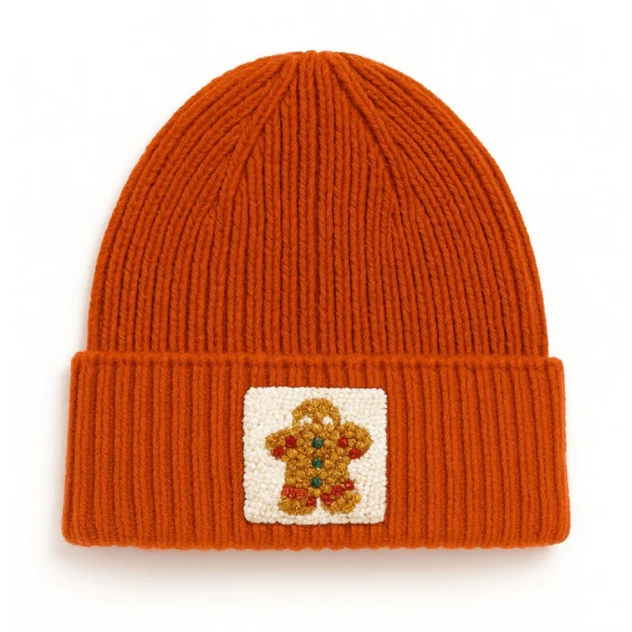 Product: Orange Wool Kids Beaniesi Gingerbread Hayvan Motif Punch-embroidery Detailed