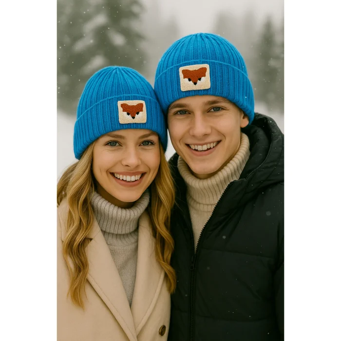 Orange Wool Luxury Beanie With Fox Punch Detail