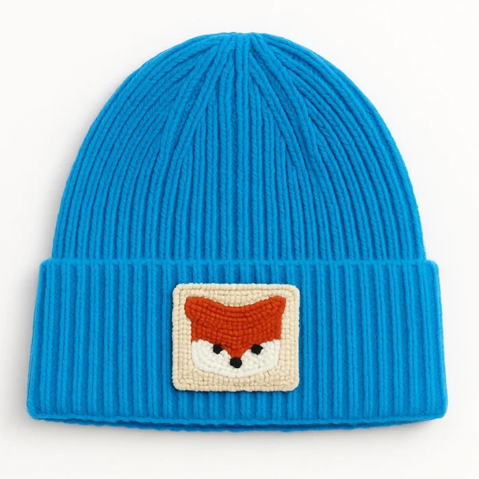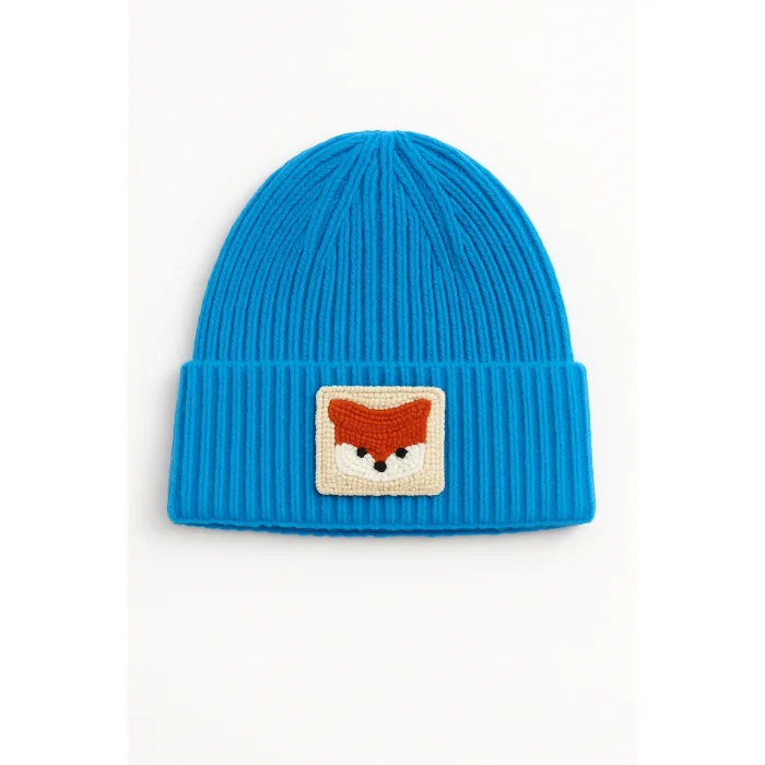 Orange wool luxury beanie fox punch detailed