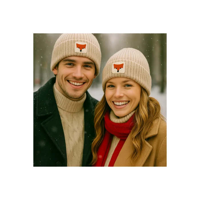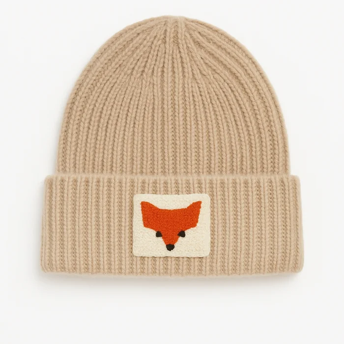 Orange wool luxury beanie fox punch detailed