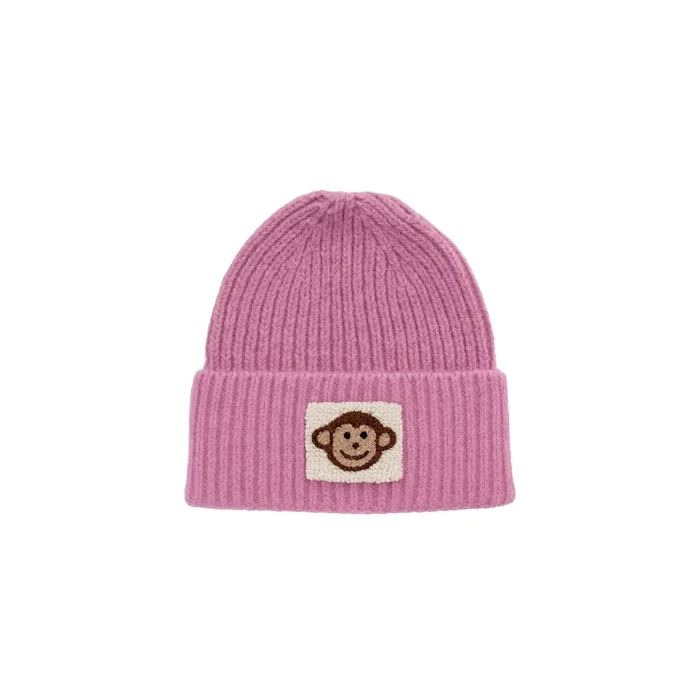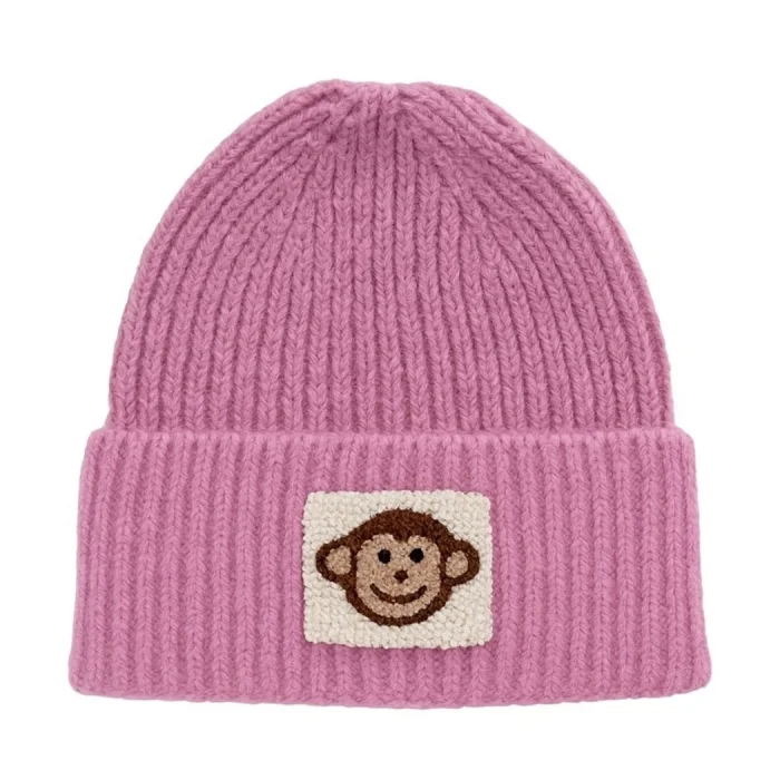 Product: Pink Beanie Monkey Punch-embroidery Patterned Luxury Wool Hat Holiday/christmas Gift Kurabiye Beanie