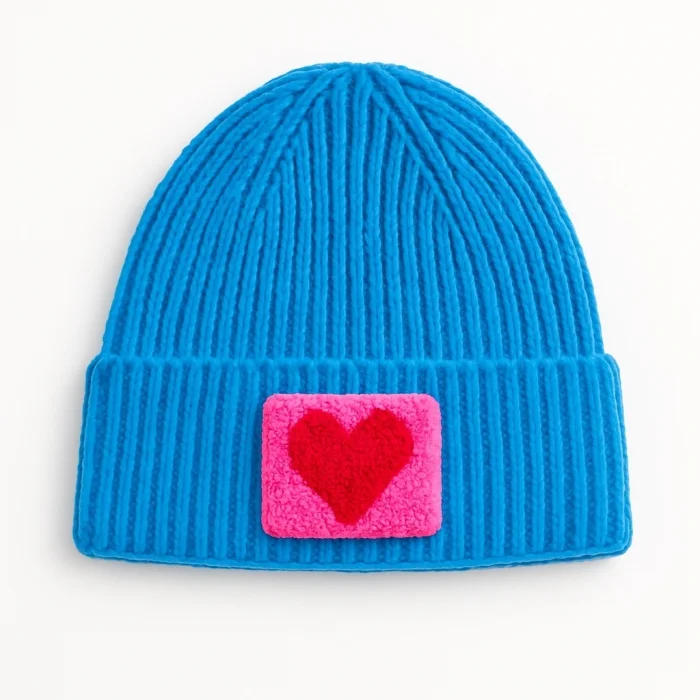 Product: Pink Kids Ve Youth Beanie Pink Heart Punch-embroidery Patterned Luxury Wool Hat Holiday/christmas Gift