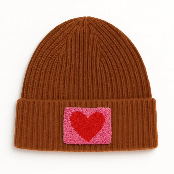 Product: Pink Kids Ve Youth Beanie Pink Heart Punch-embroidery Patterned Luxury Wool Hat Holiday/christmas Gift