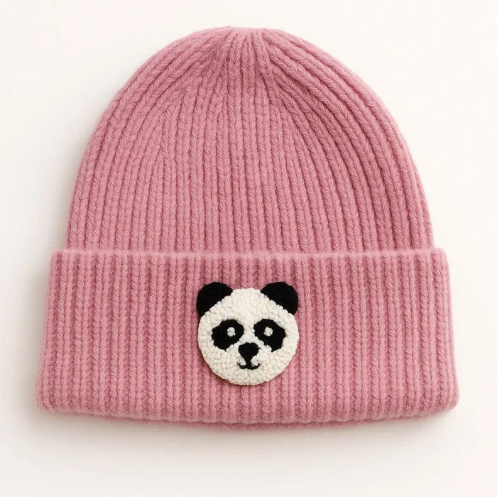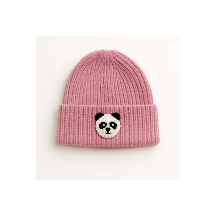 Product: Pink Panda Punch-embroidery Detailed Wool Beanie