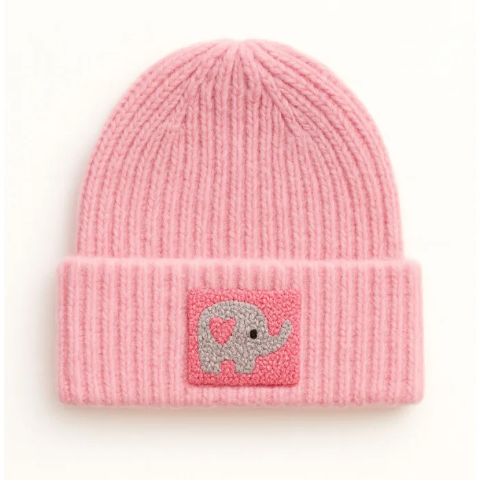 Product: Pink Wool Luxury Beanie Pink Elephant Punch-embroidery Detailed , Unısex Beanie
