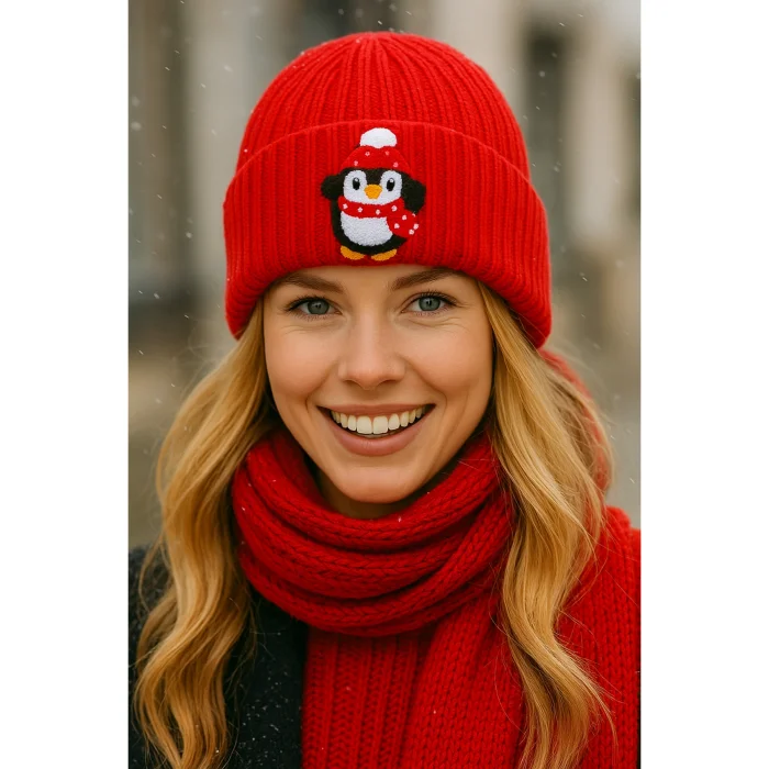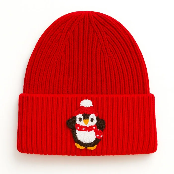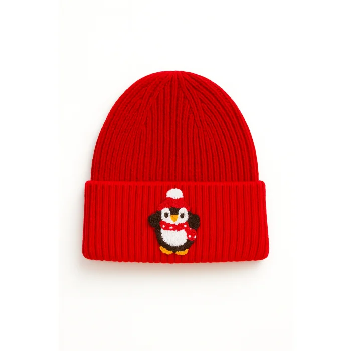 Product: Red Wool Beanie Penguin Punch-embroidery Luxury Beanie Hayvan Patterned