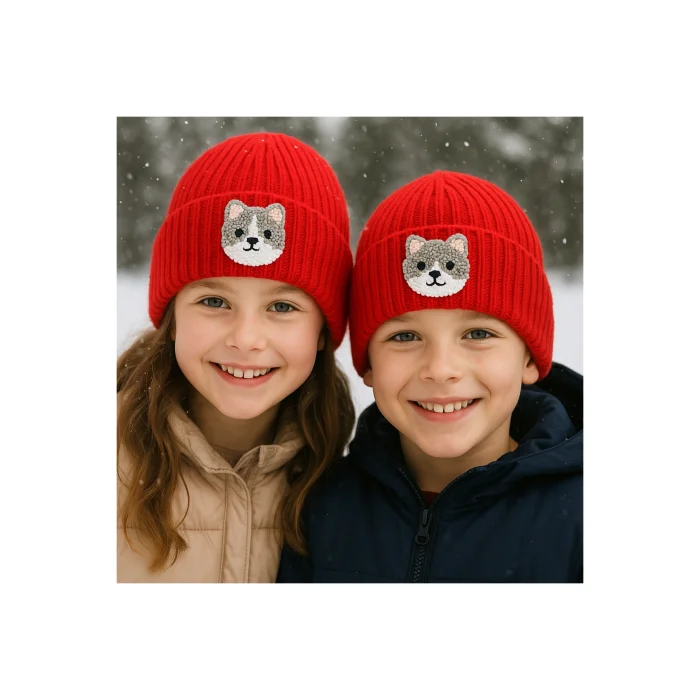 Red wool children's-teen beanie with cat punch figure Thanks to its wool material, it keeps children's heads warm and offers a natural softness;; Woven fabric structure increases durability and provides long-term use; It is specially designed for children and their convenience and comfort are prioritized; It has a stylish design that is presented to children with cute animal figures and color combination; If you want to send it as a gift, it is sent in a very elegant package.