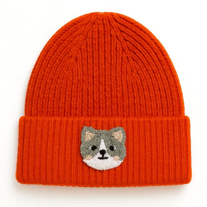 Product: Red Wool Kids-youth Beaniesi Cat Punch-embroidery Motif Giftlik