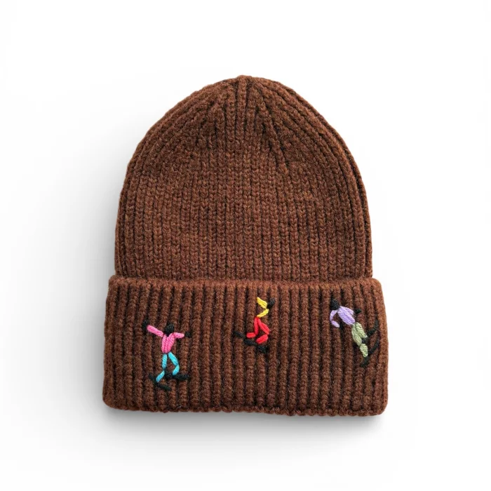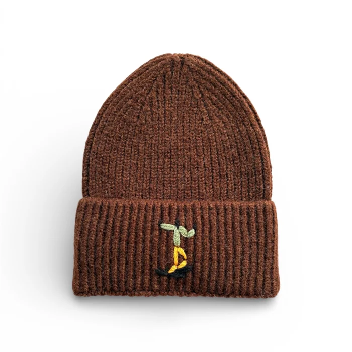 Skier Embroidered Brown Wool Beanie