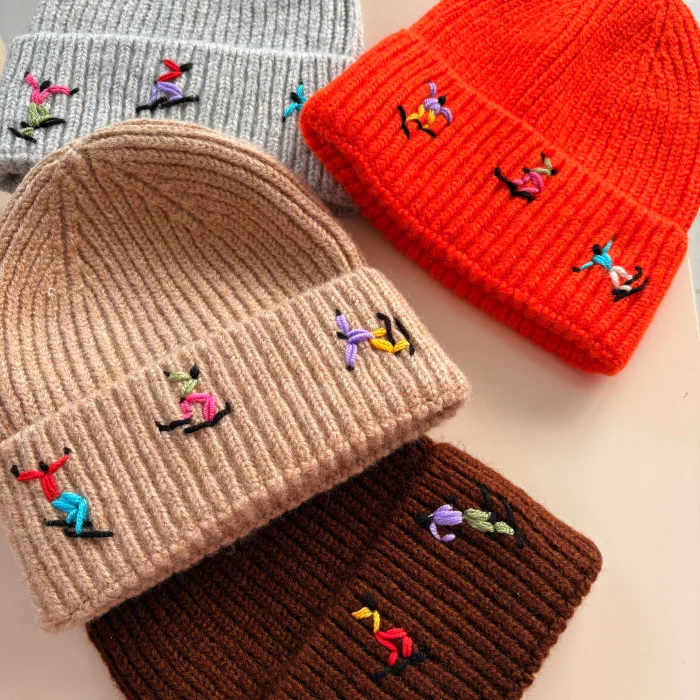 Skier embroidered brown wool beanie