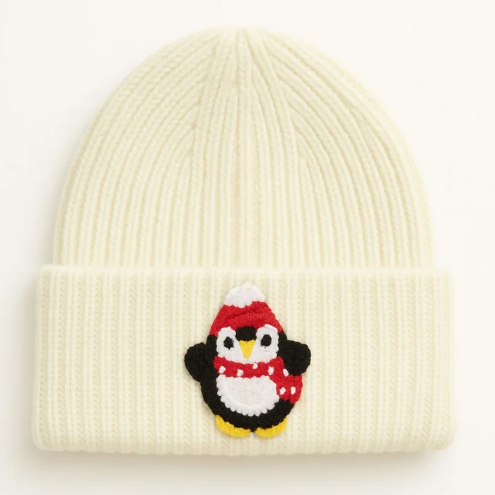White Beanie Red With Scarf Penguin Punch-embroidery Patterned Luxury Wool Hat Holiday/christmas Gift