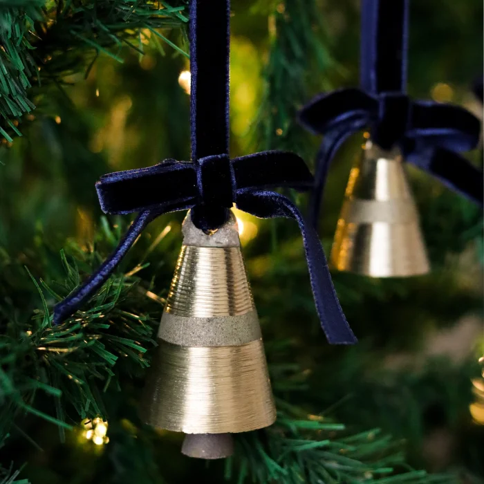 Decorate your tree in a real traditional Christmas style with the "Big Bell with Velvet Ribbon" from the Beige & Stone Christmas collection. Dimensions with ribbon: 12 cm Gold bells: H: 7 cm ; It is made of velvet ribbon and brass bell;