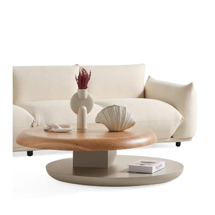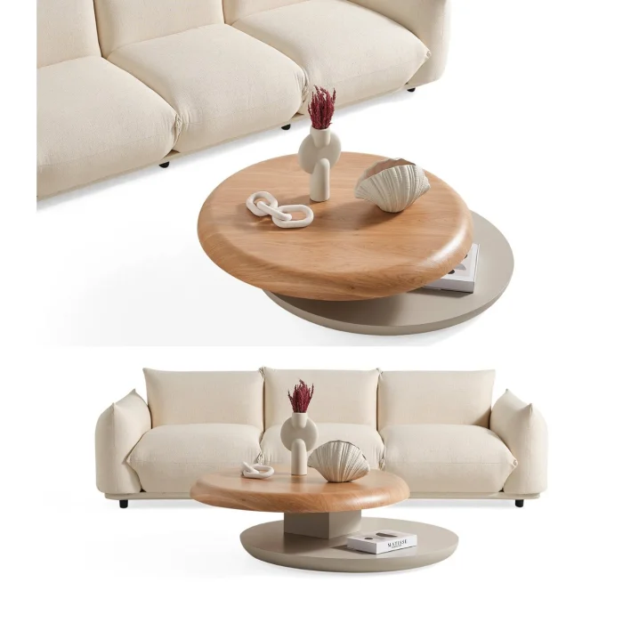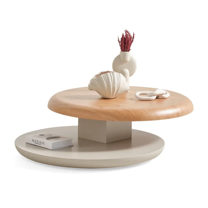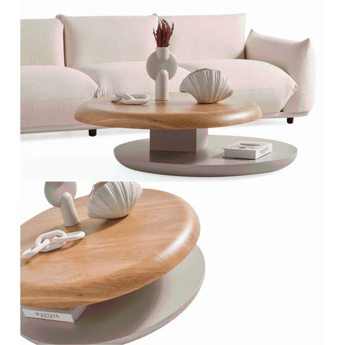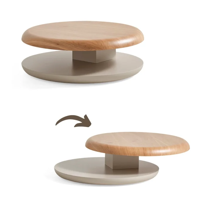 Product: Gironde Wooden Mechanism Wheeled Swivel Coffee Table Beige
