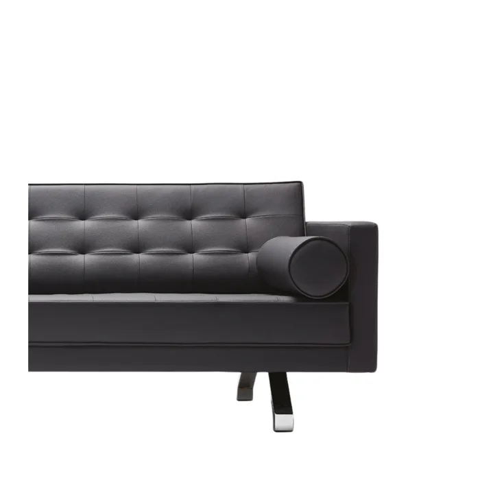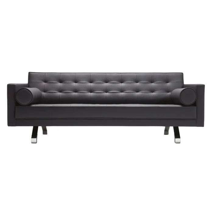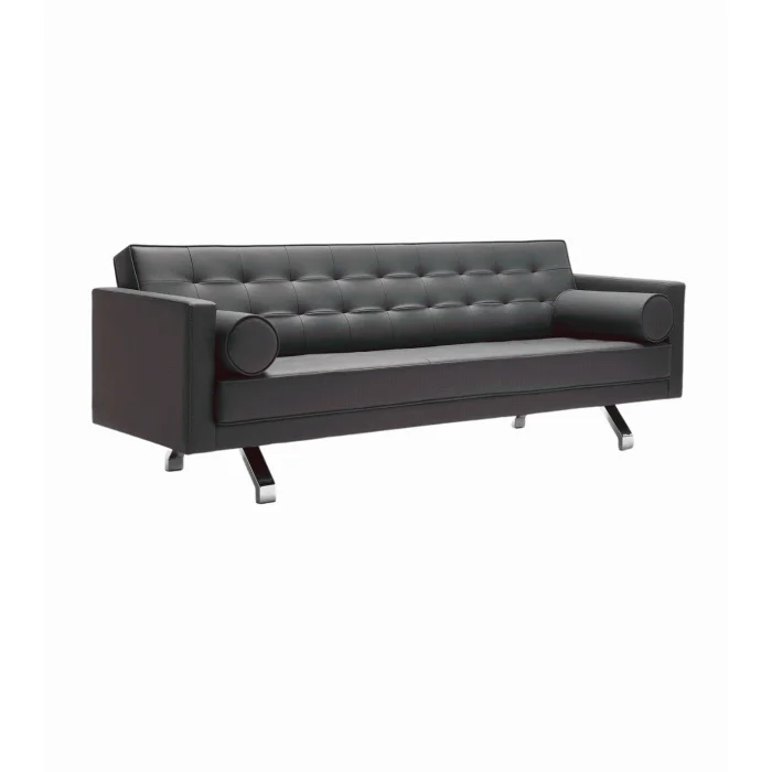 Product: Zirum Metal Leg Quilted Leather Black Triple Sofa