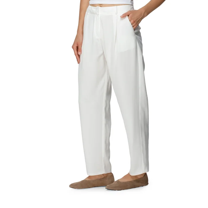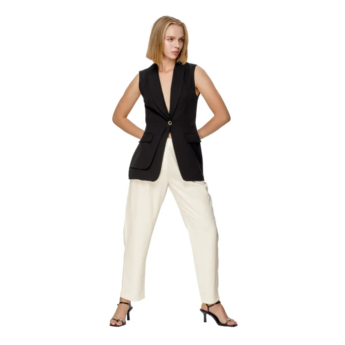 It is made of 55% Lyocell (an environmentally friendly sustainable fabric produced from wood pulp fibers), 35% Viscose (a natural fabric produced from natural cellulose fibers obtained from beech wood or cotton) blend fabric. It has a pleated front and a slightly draped, soft texture. It is unlined, it does not show inside due to the thickness of the fabric.