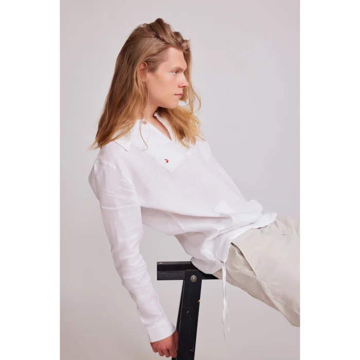 Discover the North End Linen Shirt – effortlessly blending relaxed summer charm with timeless sophistication. Its large collar, pullover style with a single button closure, and versatile long sleeves with drawstring detail are crafted from lightweight 100% linen for a look that’s both modern and casually refined. Model is 194cm tall and wearing XS-S size.