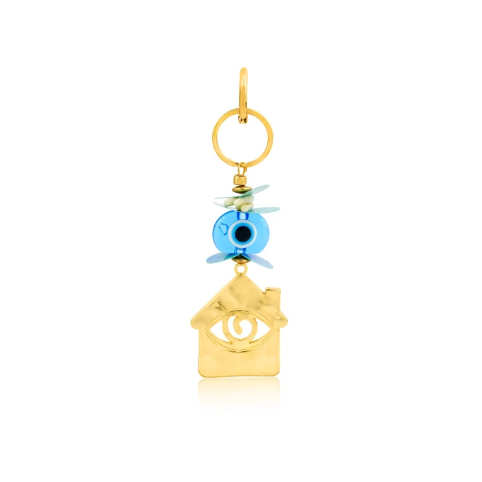 Natural stone, gold plated home evil eye keychain / bag charm