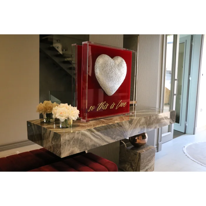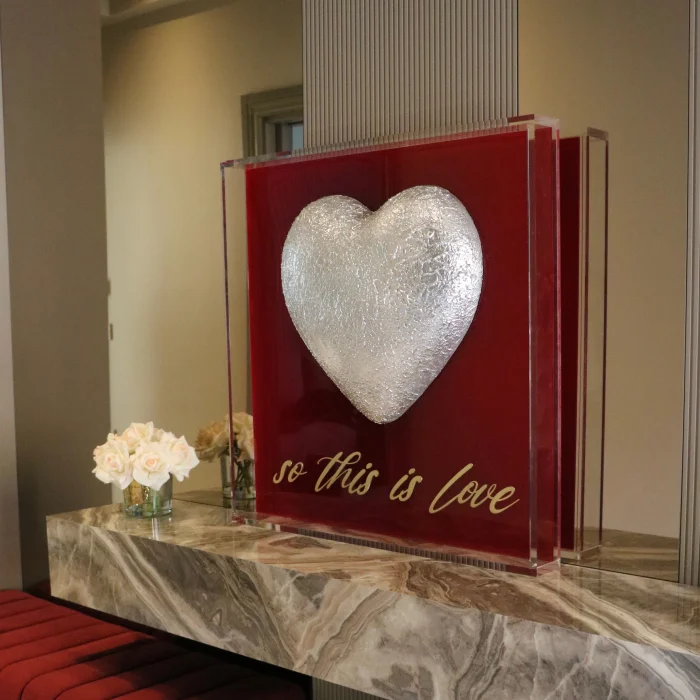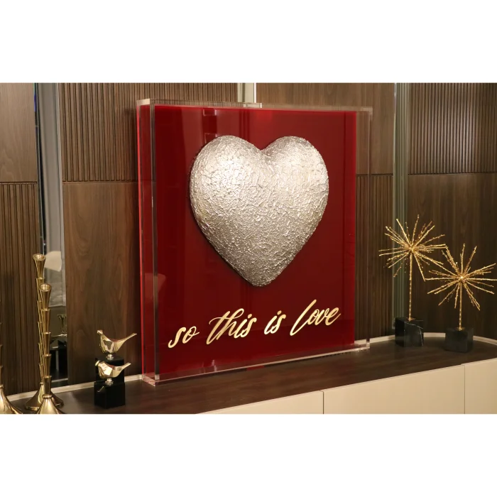 Product: Besart - Plexiglass & Brass Detailed Textured 3d Heart Luxury Wall Art | 80×80 Cm | Modern Statement Artwork
