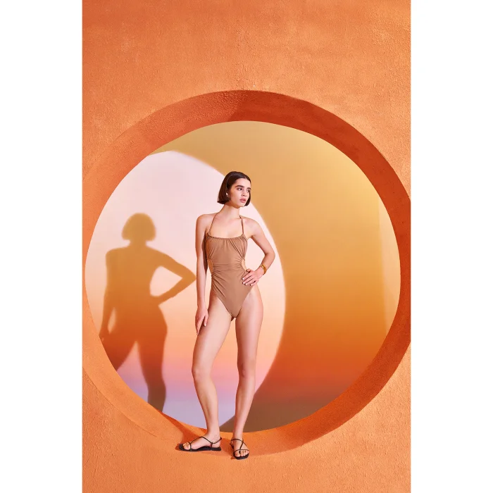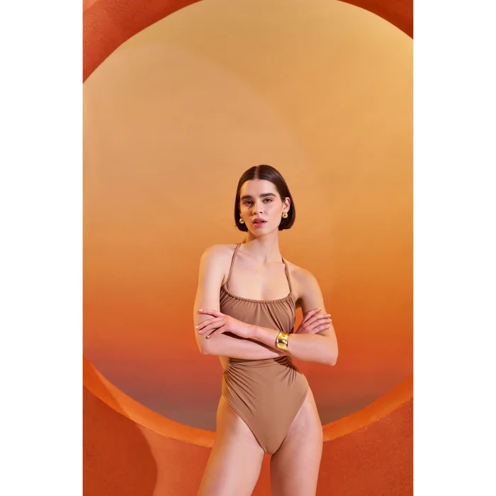 Product: Jonna Burnt Sienna Drapeli Boyundan Bağlamalı Mayo