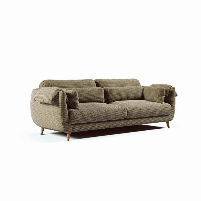 Mevy sofa brings Scandinavian design aesthetics to your living spaces with a modern interpretation. Its minimalist lines and elegant rounded lines add a balanced and sophisticated atmosphere to the space. Wooden leg details offer a warm atmosphere with the use of natural materials and complete the aesthetic stance of the sofa.