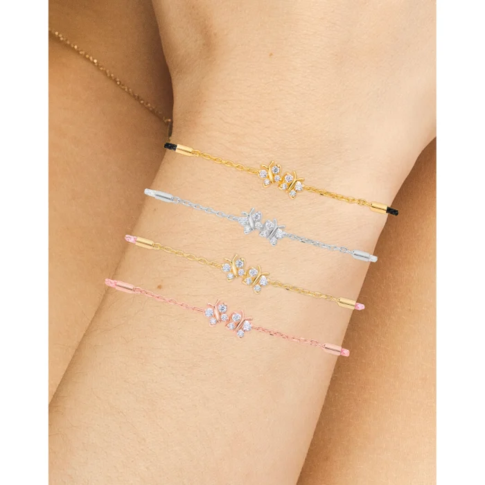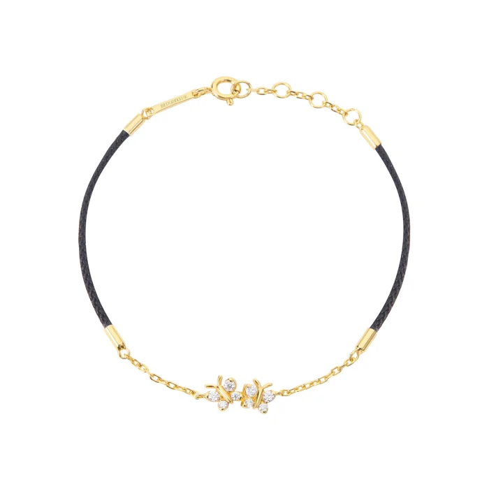 Discover The Perfect Gift Jewellery, This Enchanting Flutterfly™ Vermeil Black Silk Cord Butterfly Bracelet Serves as a Reminder of The Extraordinary Beauty Contained in Nature - You are Magnificent. Made Using a Premium Silk Cord Containing Two Iddy Biddy Butterflies Set in Premium Vermeil. Each Butterfly Contains Four Lab-Grown Moissanites that Refract Light to Create a Mesmerising Sparkle. This Playful Piece is Super Versatile as it's Perfect For Gifting As a Friendship Bracelet or Great For Those Wanting to Add Colour to An Existing Wrist Stack. Handmade Using Sterling Silver with a Thick Layer of Gold (Vermeil) by Extraordinary Humans for Extraordinary Humans © Design Copyrighted BLOOMTINE Create the Perfect Gift Jewellery. Gift this Bracelet to Someone You Adore. Available in One Size Fits All (5.75 - 7.5")
