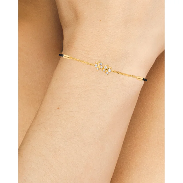 Product: Enchanting Flutterfly™ Gold Vermeil Black Silk Cord Butterfly Bracelet