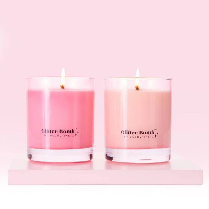 Introducing The 'Glitter Bomb™' Gift Candle In Our Opulent Pink Glass Jar and Creamy Soy Wax. The Most Irresistible Entrancing Candle for Sparkle Lovers Originally Developed for Gifting, as The Perfect Gift Candle. This Candle Has Become a Staple For Everyone Who Loves Irresistible Iridescent Sparkle.