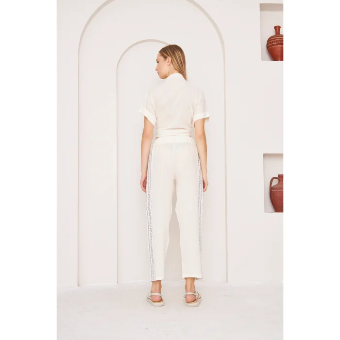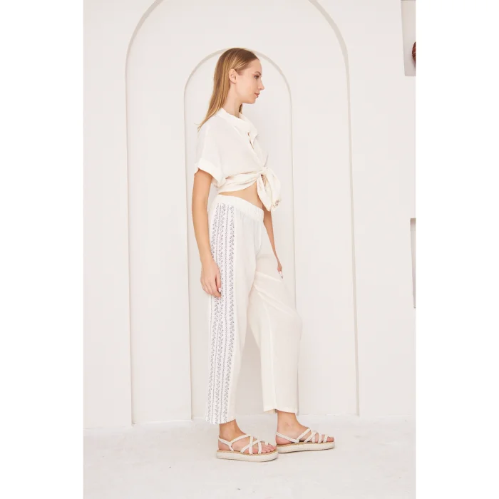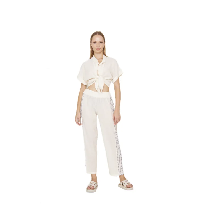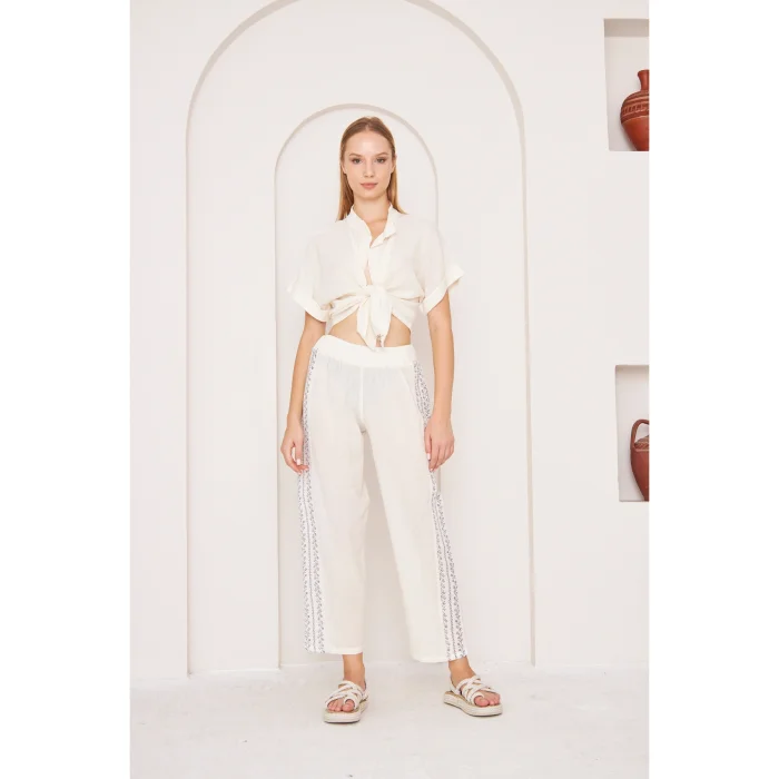 Embrace the spirit of summer with the "Boho Cool Touch Top", our lightweight and short-sleeved front tie shirt design is ideal for hot days. Made from fine natural Sile cloth fabric, this front-knotted top offers a light and airy feel, offering comfort and a stylish look. The lightweight construction of the shirt enhances breathability and provides a gentle touch to your skin. You can create a complete summer outfit with suit pants or create your own style with different pieces. Product Details: Title: White Cool Touch Front Tie Deep Neck Crop Top Type: Boho Crop Top Categories: Front Tie Shirt, Crop Shirt, Front Knotted Top Fabric: 100% Organic Turkish Cotton; Cotton Sile Cloth Style: Bohemian, Boho, Boho Chic, Minimalist, Casual Colors: Light White, Natural Mold: Loose Cut Occasion: Holiday Wear, Casual, Festival, Spring, Summer, Casual Use Design Details: Deep Neckline, Short Sleeve