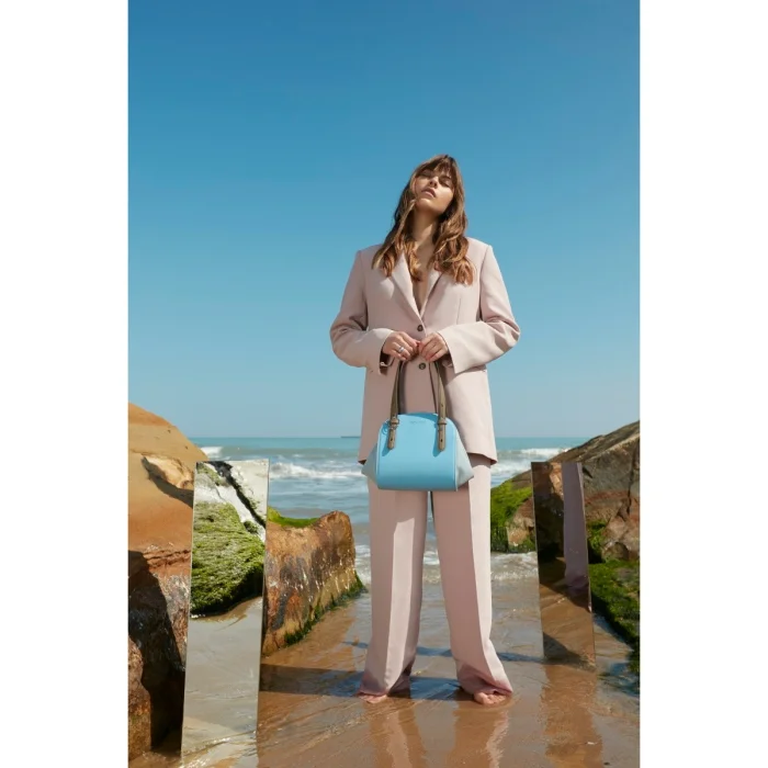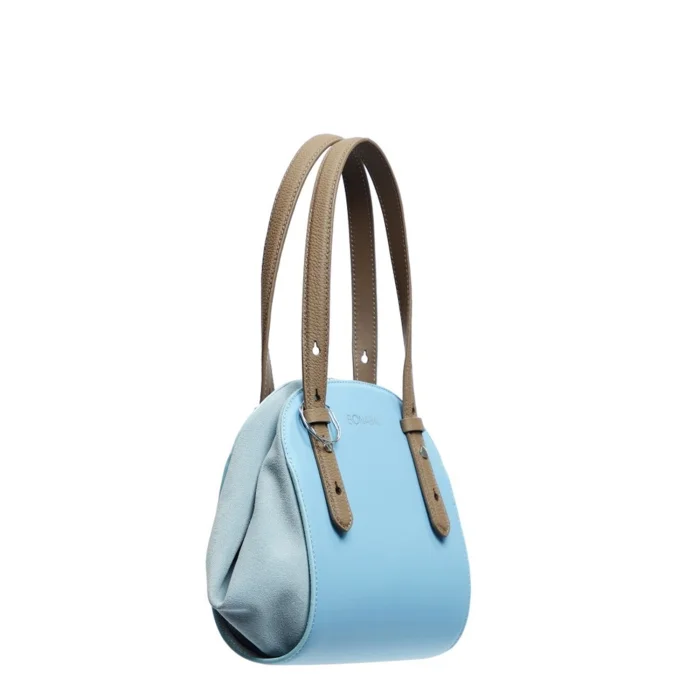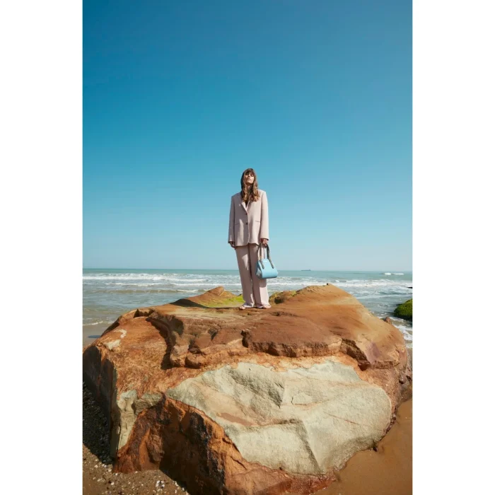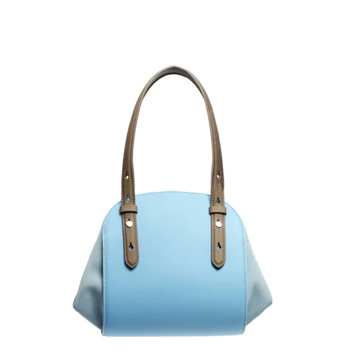 All about pureness. Square geometric figure. Rolled shape. Soft feeling, suede details. Suitable to use as both shoulder bag and backpack. Indispensable for travel. Inspired by and in harmony with nature. Colours of earth and sky.