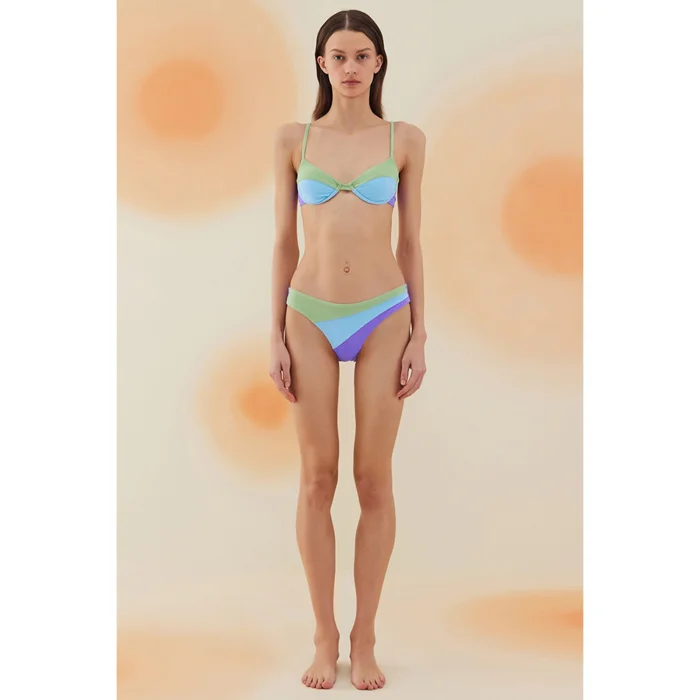 Italian fabric. Made from recycled fibre. Ultra resistant to chlorine. The fabric structure is soft, flexible and body-hugging. Resistant to sunscreen.