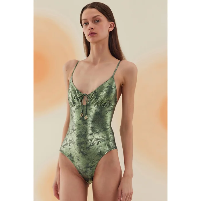 Product: Badain Shiny Sonic Lace-up V-neck Swimsuit