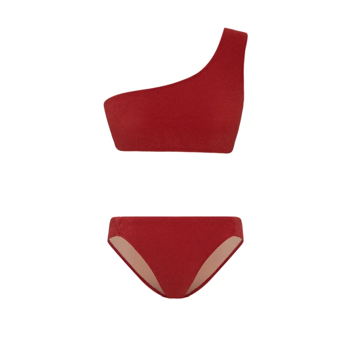Italian fabric. Made from recycled fibre. Ultra resistant to chlorine. The fabric structure is soft, flexible and body-hugging. Resistant to sunscreen.