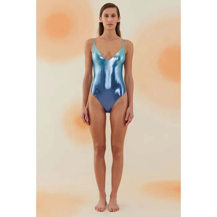 Product: Carison Shiny V-neck Strap Swimsuit