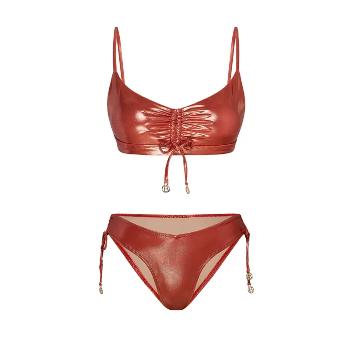 Product: Freesia Shiny Terracota Red Strapped Bikini Set